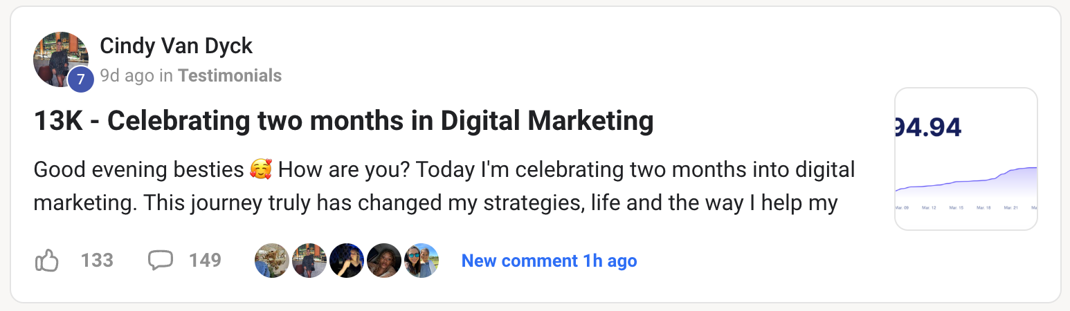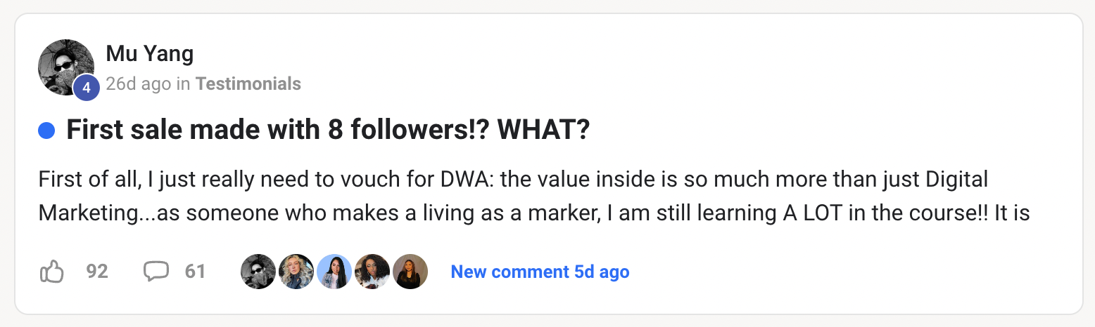 This course actually comes with its own community of 48,000+ people where you can ask questions & network. In addition to that, if you get the course with me, you will be added into my PRIVATE CHANNEL youll receive my personal phone number & an optional group chat with weekly calls! I want to see you become a success story!