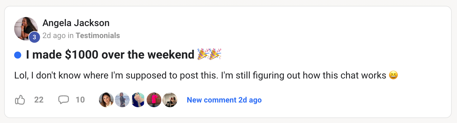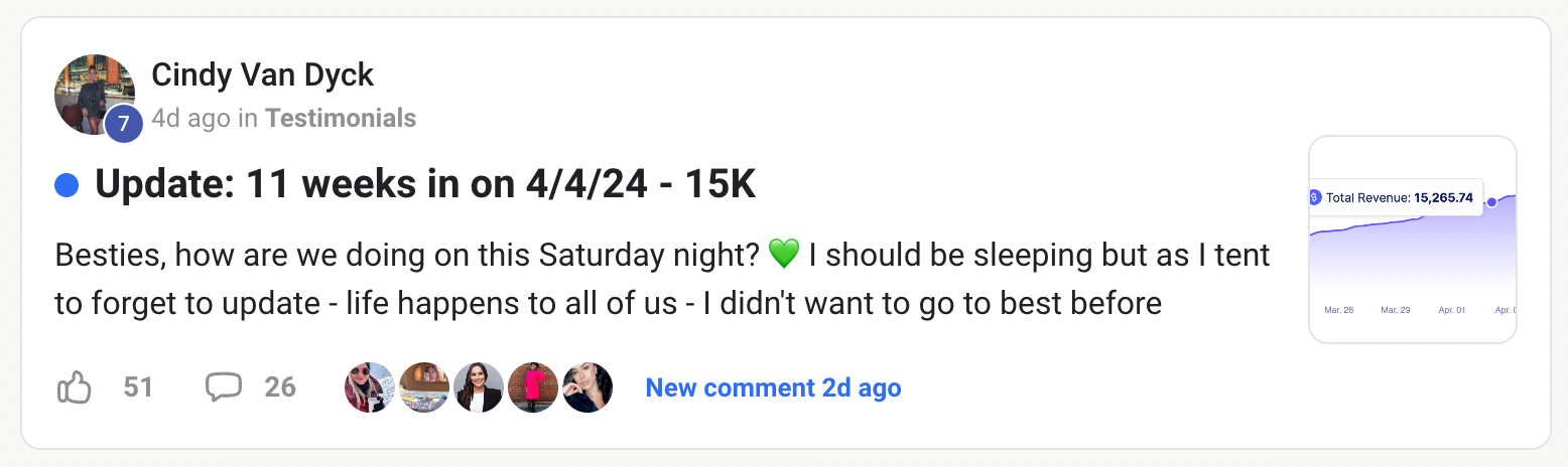 Each week, you'll be able to join live calls hosted by the team focusing on certain topics, Q&A's and more, so you can stay focused and keep on track to building your business