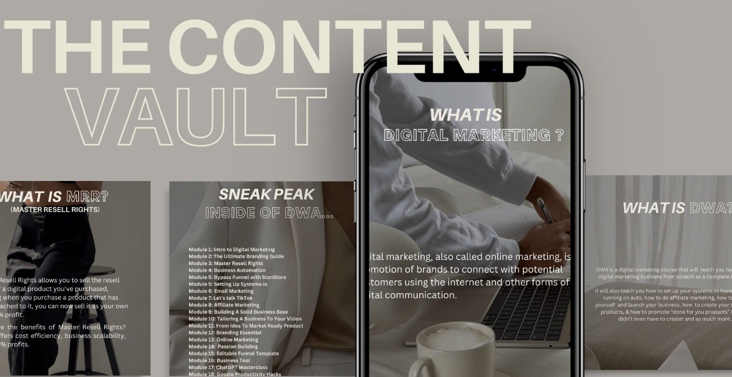 Creating content from scratch can be difficult, luckily, you can get instant access to the Digital Wealth Academy content vault which includes content in these categories: